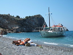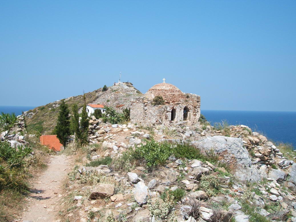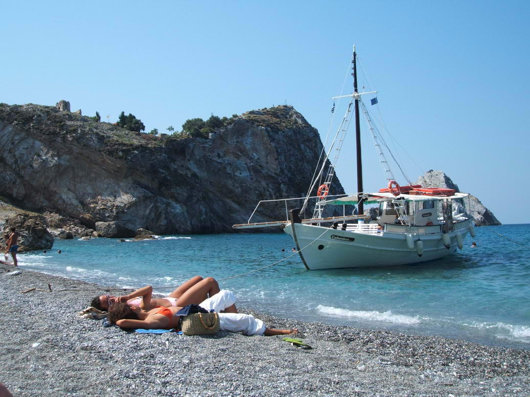 | Kastro beach at the far north of the island again quiet at any time. This is taken on the way up to the Monastry. |