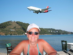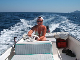 Rosslyn pretending to be a drug smuggler, actually we hired a boat to go around all the best beaches we could not reach on the motorbike. |